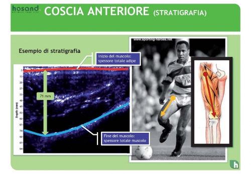 L’adipometro Hosand , scorrendo sulla zona di misura, crea una mappa dei tessuti sottostanti (stratigrafia), sulla quale è possibile: